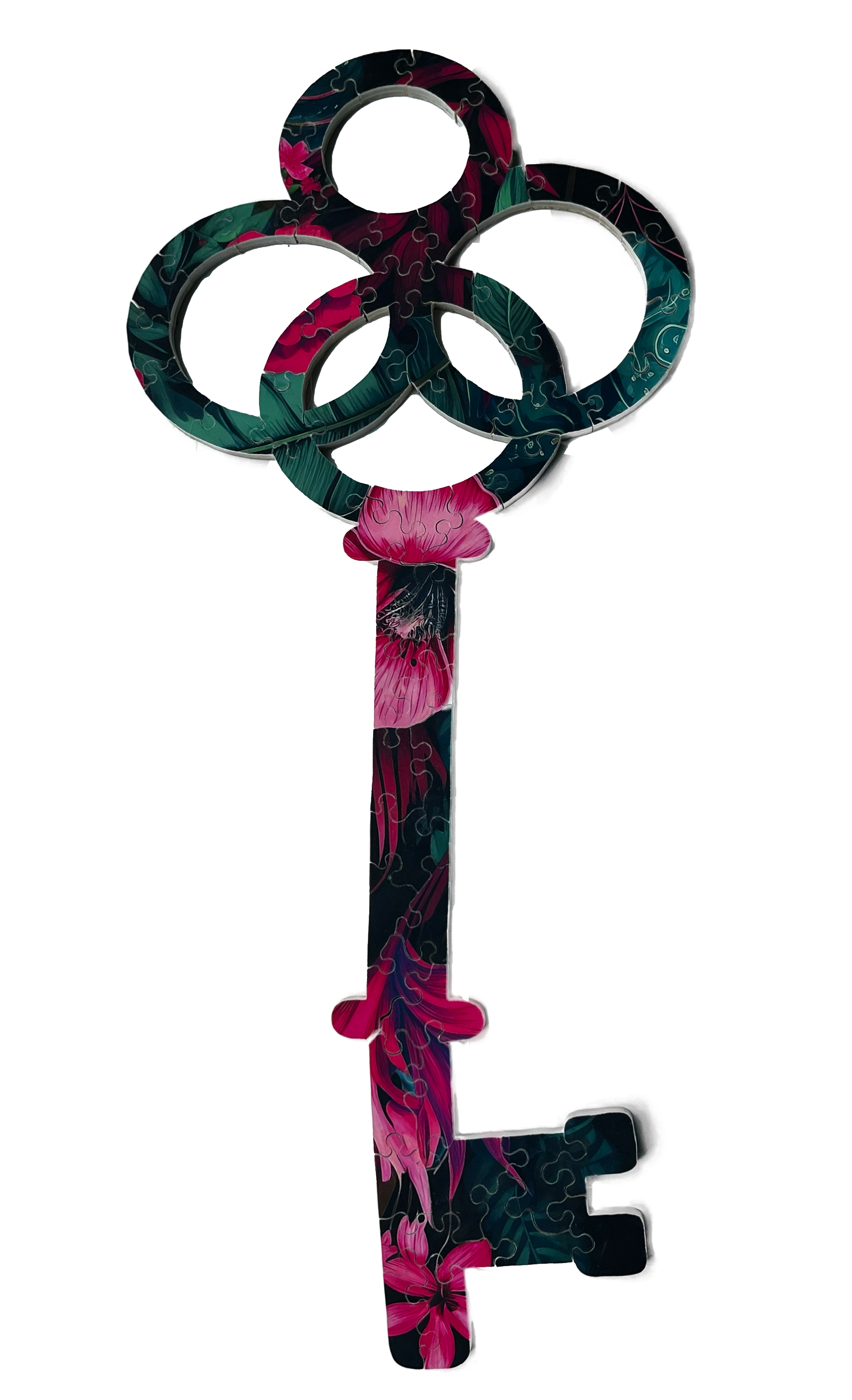 Discover the joy of piecing together this playful key-shaped puzzle, bursting with garden-inspired charm.