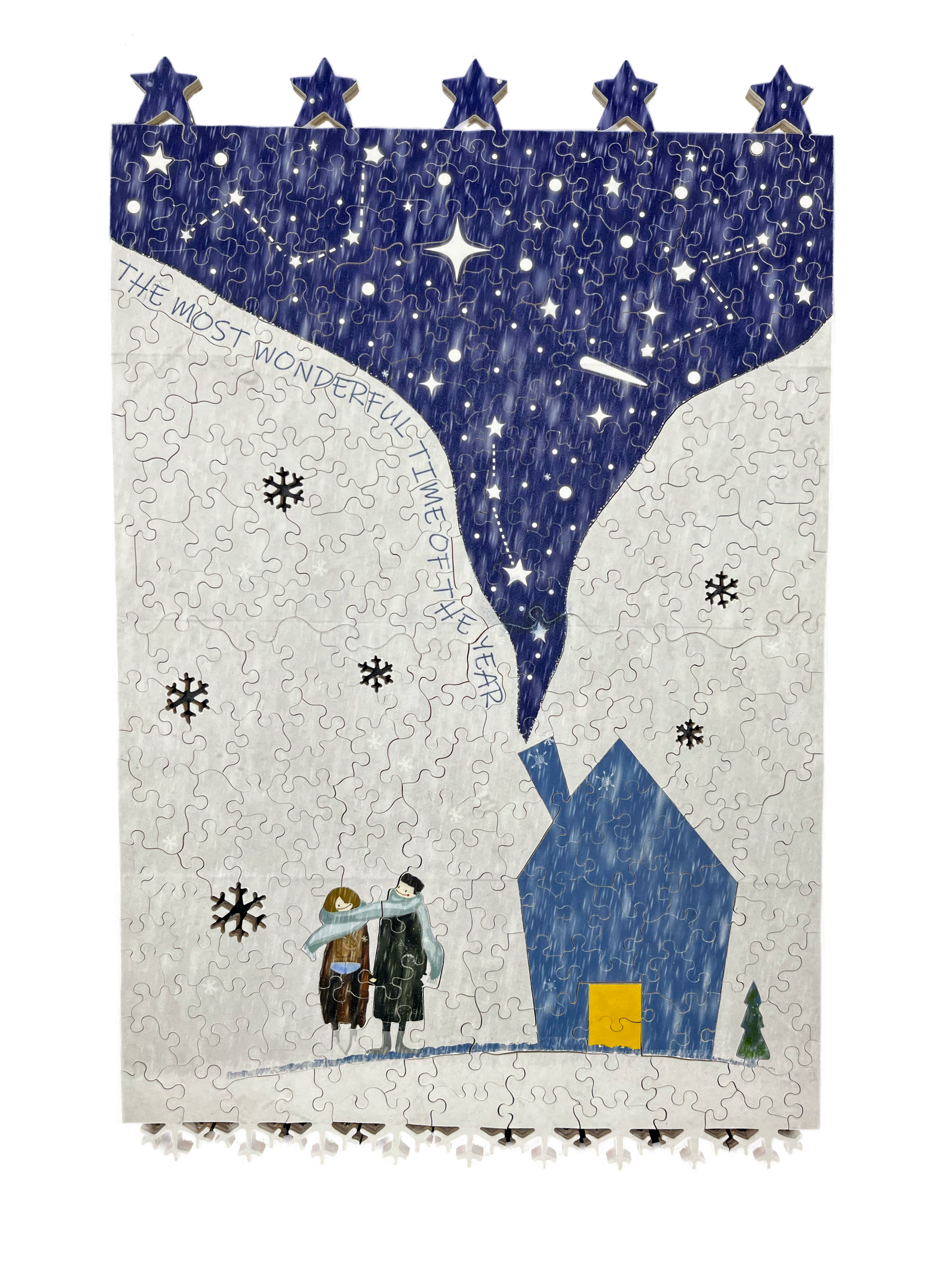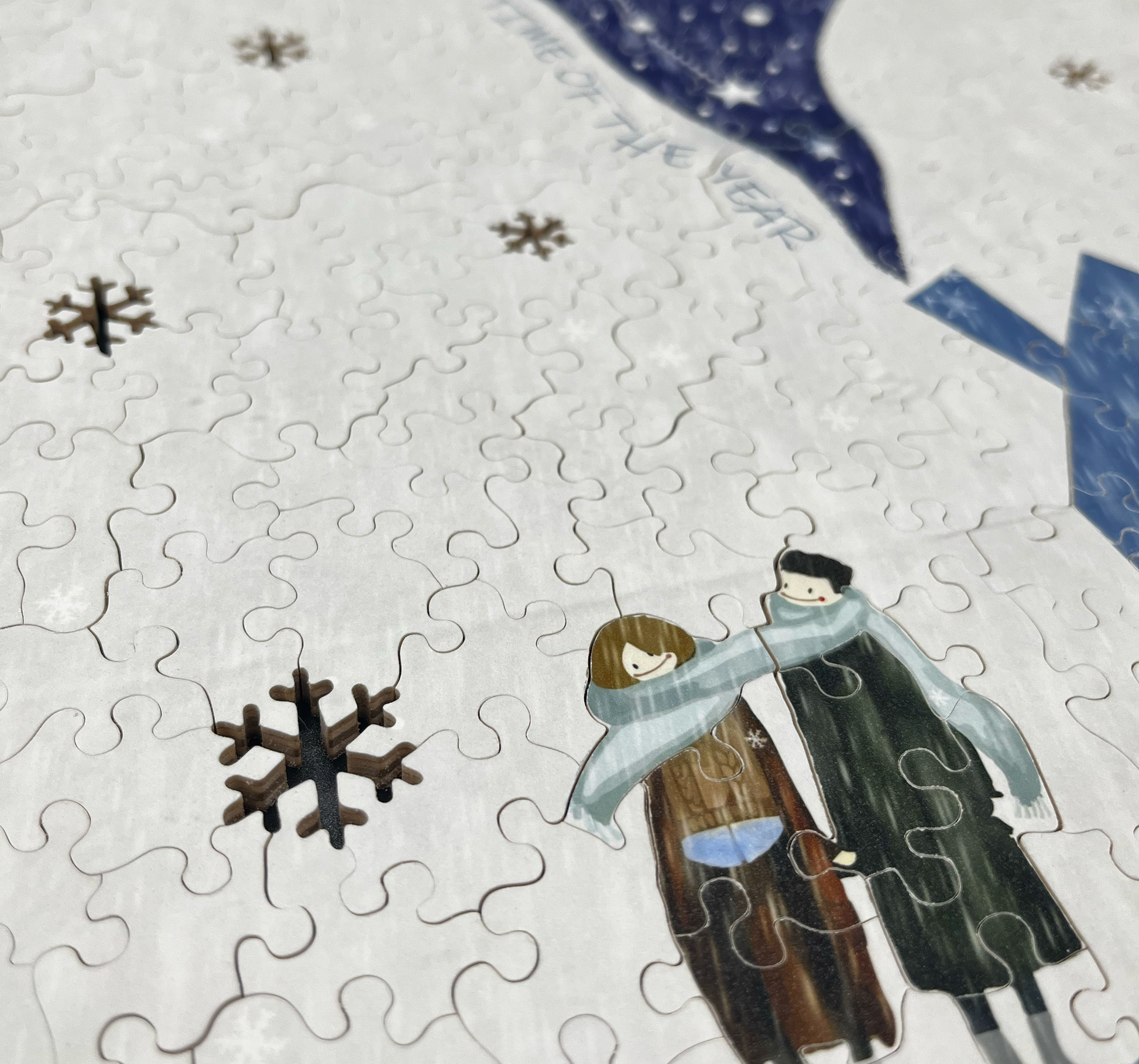 Embrace the magic of the season with this charming puzzle that celebrates winter’s beauty. Featuring cleverly designed edges and drop-outs, it adds an exciting twist to your puzzling experience. Perfect for cozying up on chilly days, this puzzle invites you to enjoy a playful and engaging journey through a winter wonderland.