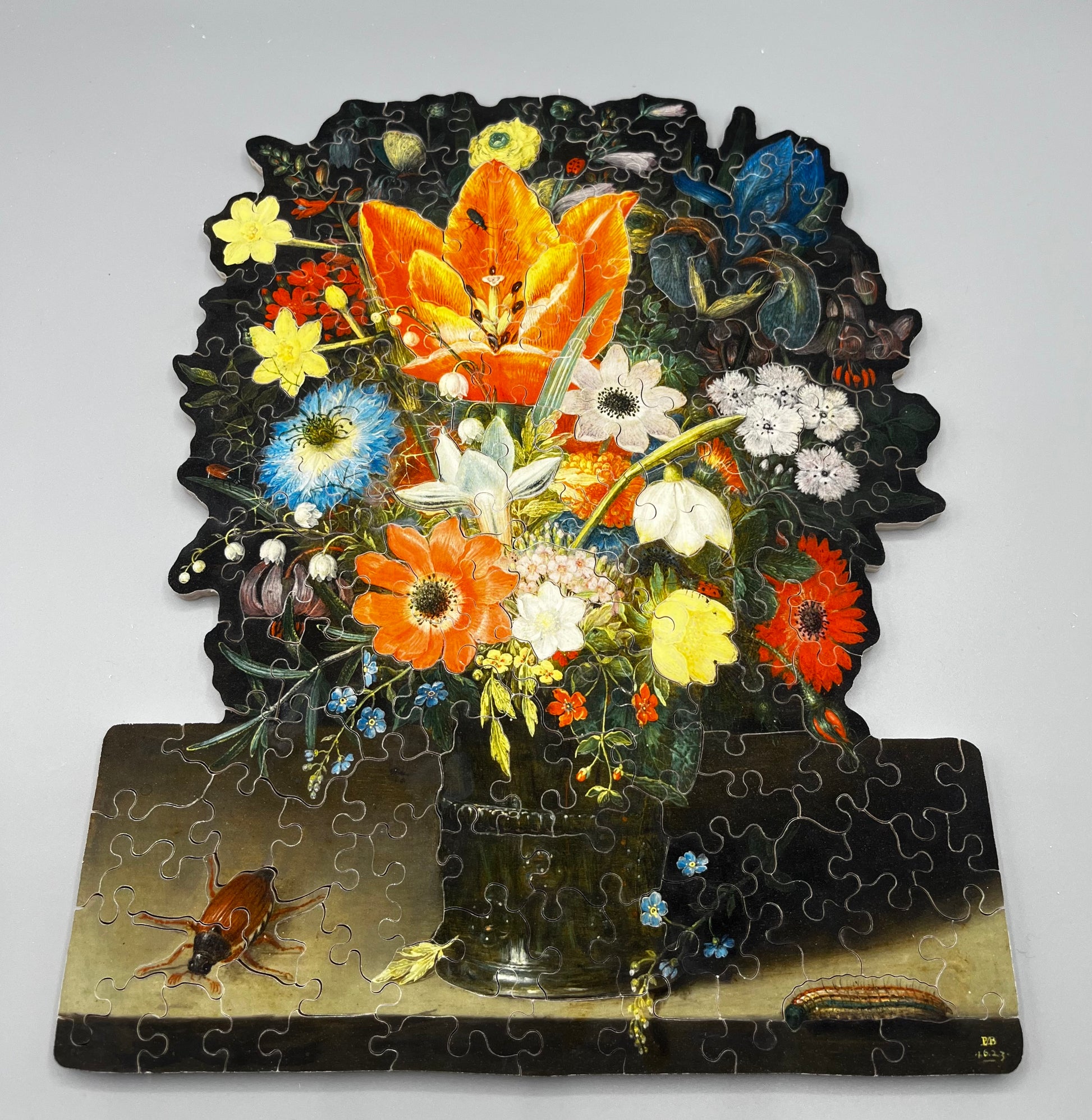 Piece together some flower power with our Still Life With Iris puzzle, featuring a beautiful iris in full bloom among a bouquet of colorful flowers.